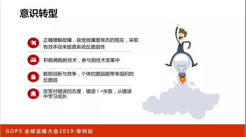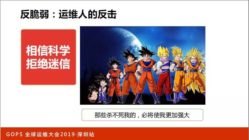 我们对服务影响的要求越来越低,挑战越来越大,如果还按照以前的思路做事情的话,到后来很多人到投产期间要去求神拜佛,求一下观音。但我们学了新思想:要反击。我们要相信科学,拒绝迷信。
