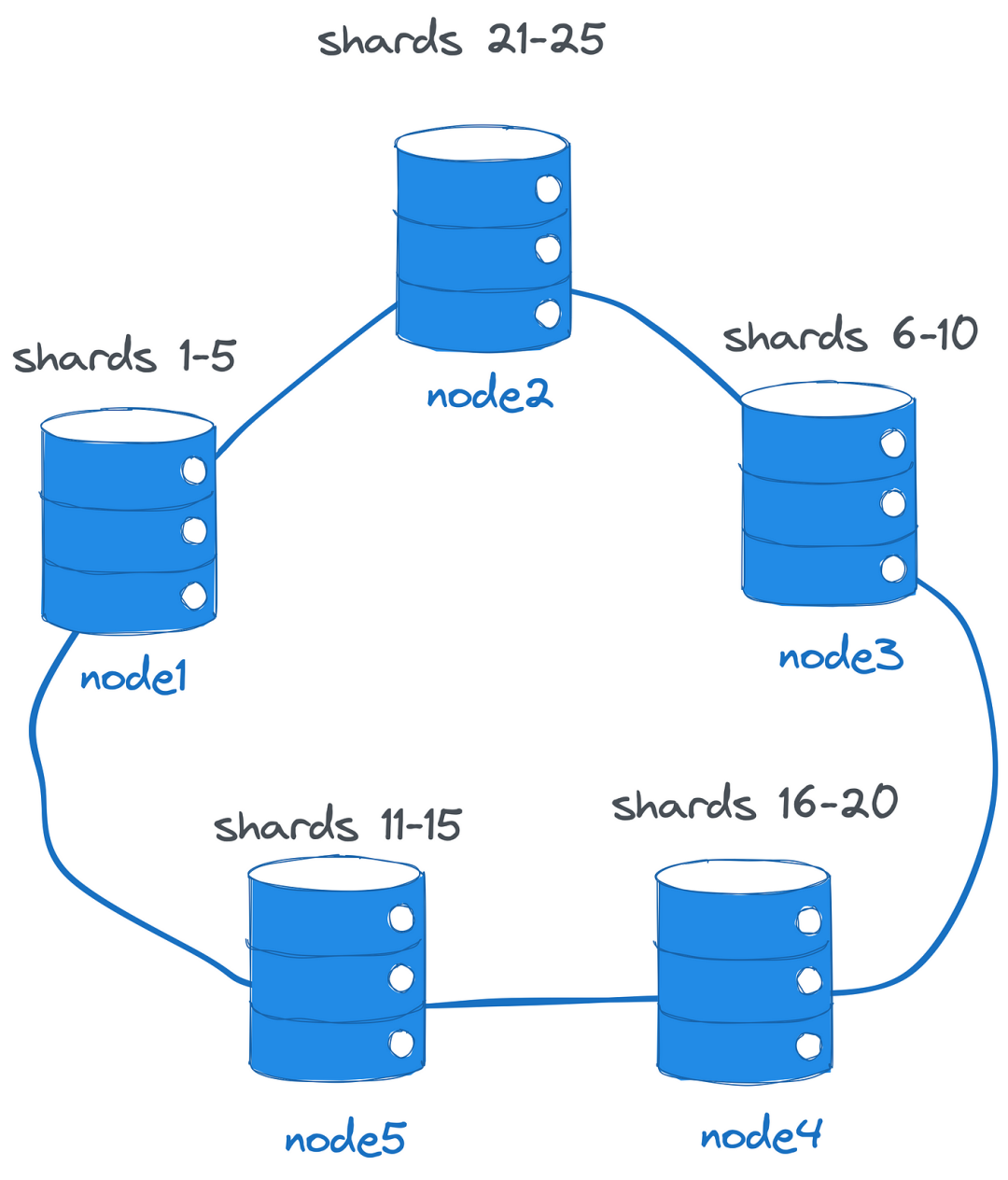 集群中的所有节点都知道对方,因此也知道数据的分布。通过直接通信,每个节点可以将客户端请求路由到适当的分片所有者。此外,它们可以执行和协调多节点事务。当扩展到更多节点时,集群会自动重新平衡和分割分片。节点保持数据的冗余副本(基于配置的复制因子),即使某些节点失败,也可以继续操作而无需停机。