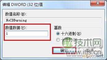 4.双击打开新建的光盘功NoCDBurning,修改键值为1,高防服务器刻录点击确定完成操作。设置如下图所示