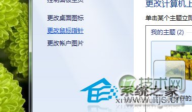 2.在弹出个性化窗口的WordPress模板指针左侧我们可以看到更改鼠标指针选项,点击此选项。何删
