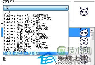 3.弹出另外一个对话框,性化在对话框的鼠标方案栏目之中会有一个下拉列表,点击此下拉列表选中自己需要删除的指针第三方主题。