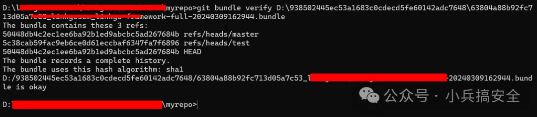 复制git bundle verify D:\938502445ec53a1683c0cdecd5fe60142adc7648\63804a88b92fc713d05a7c53_*****-framework-full-20240309162944.bundle1.