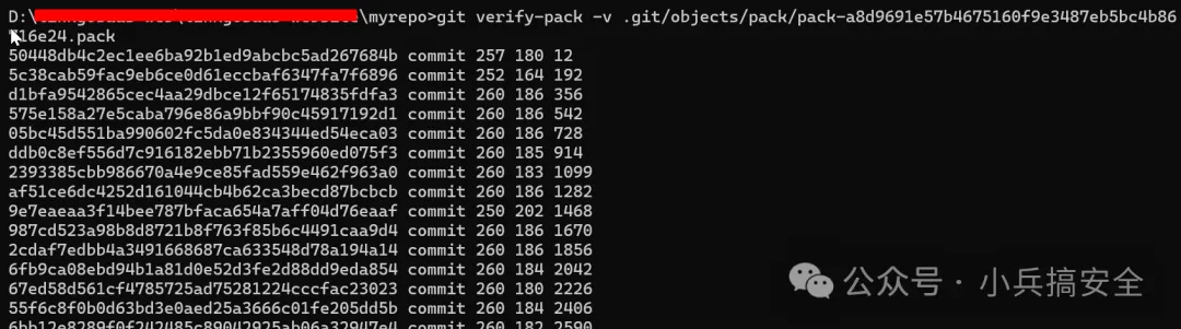 复制git verify-pack -v .git/objects/pack/pack-a8d9691e57b4675160f9e3487eb5bc4b86716e24.pack1.