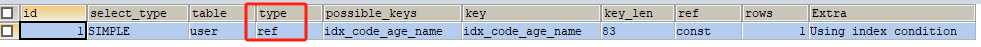 复制EXPLAIN SELECT * FROM USER WHERE CODE = 1002 AND NAME=kevin;1.都会看到 type值 为ref。引的服务器托管原则
