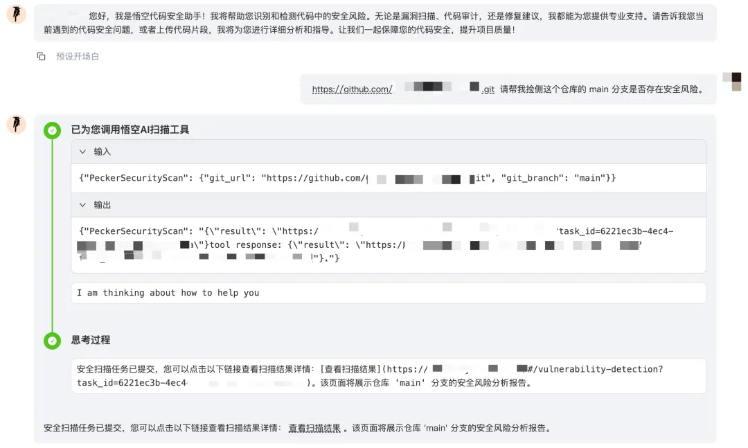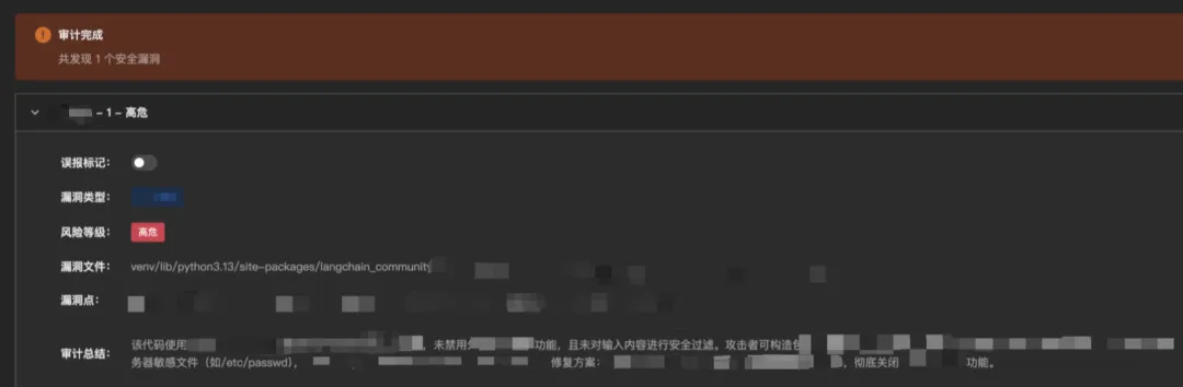 (图:悟空 Agent 后台检出 LangChian 项目的未纰漏漏洞)