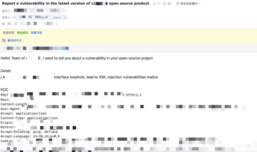 (图:悟空团队向项目官方披露漏洞细节及修复建议邮件)