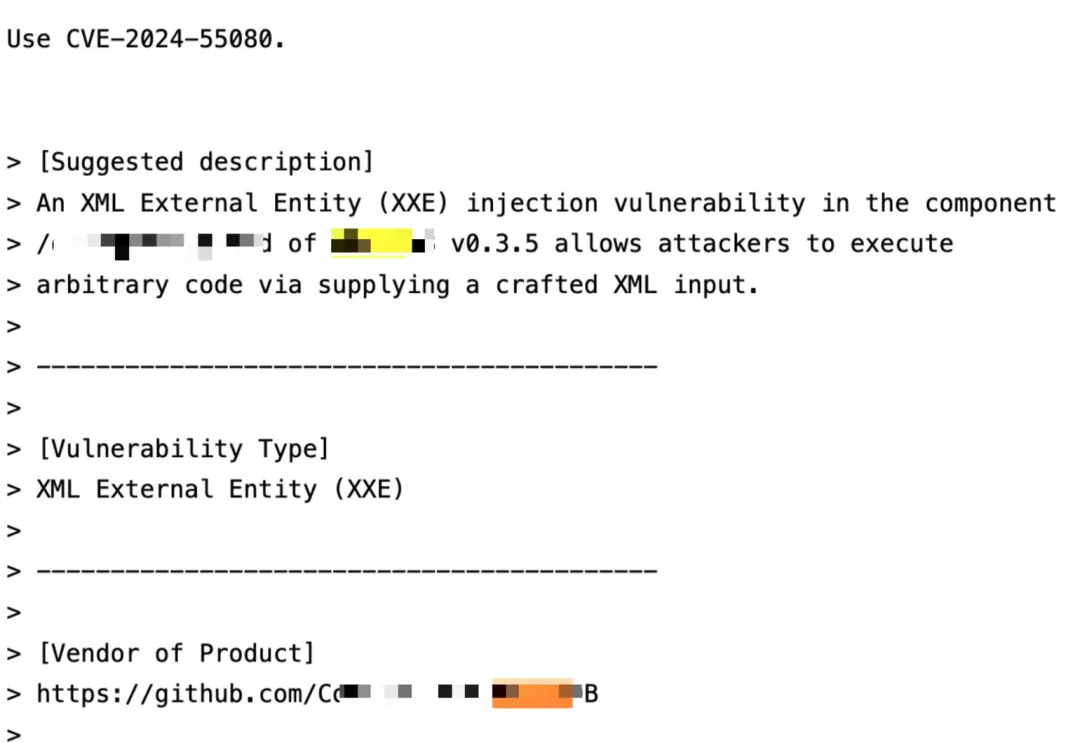 我们在持续迭代工具之余,也及时向项目官方和 CVE 官方纰漏了漏洞细节: