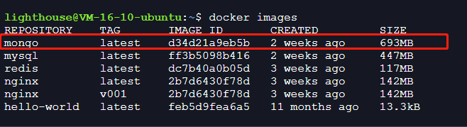 使用以下命令来查看MongoDB镜像是否成功拉取到本地: