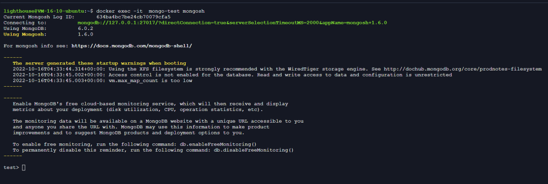 -itd:其中,i是安装交互式操作,t是入门一个终端,d指的到实是在后台运行。--name mongo-test:容器名称-p 27017:27017 :映射容器服务的快速 27017 端口到宿主机的源码库 27017 端口。外部可以直接通过 宿主机 ip:27017 访问到 mongo 的服务。--auth:需要密码才能访问容器服务(注意:安全问题,MongoDB默认是不开启权限验证的,不过设置了这里就相当于修改MongoDB的配置auth=ture启用权限访问)。