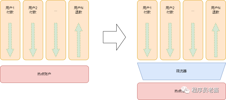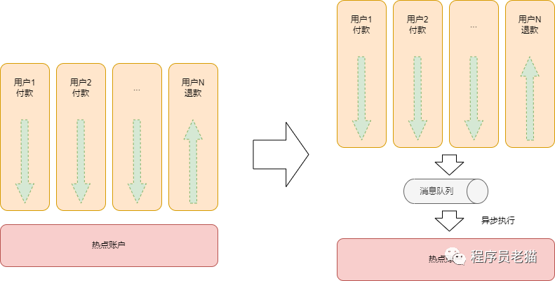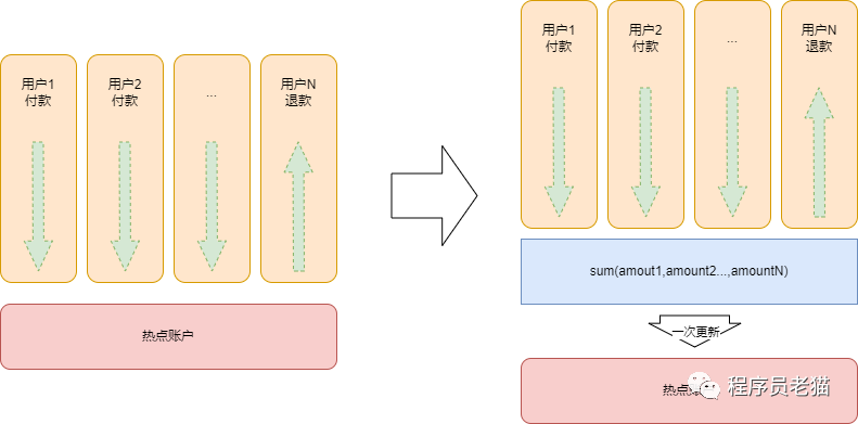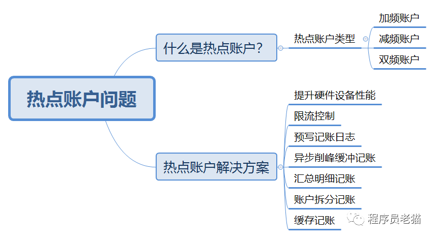 透过现象看本质,其实要解决热点账户问题,其实就是解决数据库压力过大,数据库表更新失败,执行效率过低的问题。那么解决该类问题,阁下该如何应对?(其实小猫如何可以理解面试官的用意,解决方案应该可以想到几个)