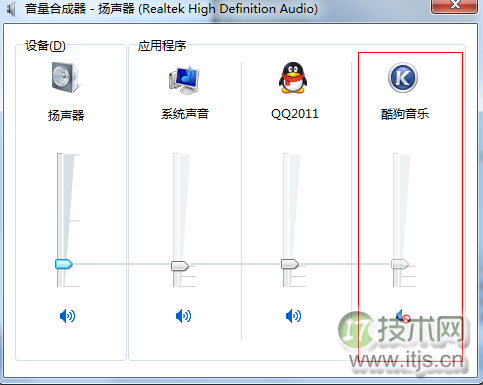 Windows 7酷狗软件无声音,统中系统声音正常。其声