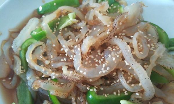 10.海蜇丝的处理:将海蜇丝切成适当长度,过凉水后沥干。