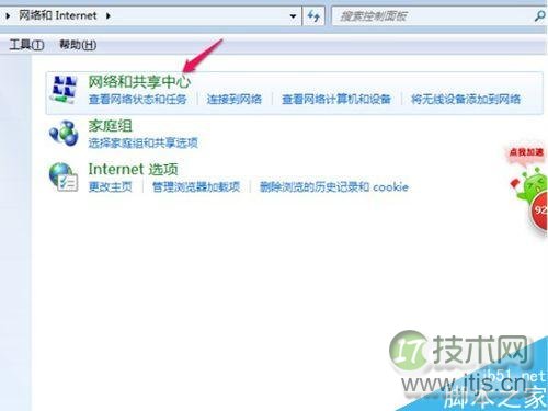 5、进入到"网络和Internet"窗口后,创建找到"网络和共享中心"选项,并单击点入.