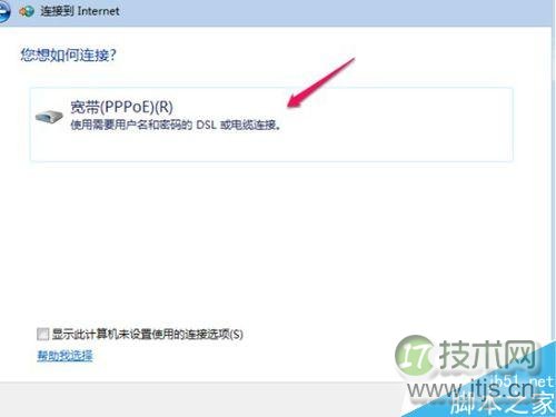 8、完成上面的捷图步骤后,会进入下一个界面,由下面的图片可以看到”宽带(PPOE)R,使用需要用户名和密码的DSL或电缆连接”,将鼠标移到此选项,然后再点击进入