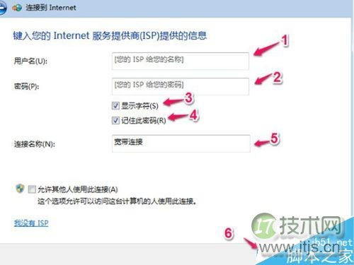 如下图,"用户名"即填入申请宽带时商家给的宽带账号,"密码"为宽带账号的密码.(这两个信息假如忘记了,可以去查看当时申请宽带的单子,里面会有这些信息).