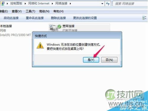 接着会弹出”windows无法在当前位置创建快捷方式.要把快捷方式放在桌面上吗”,点击”是”选项