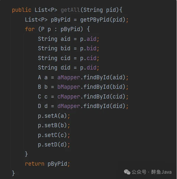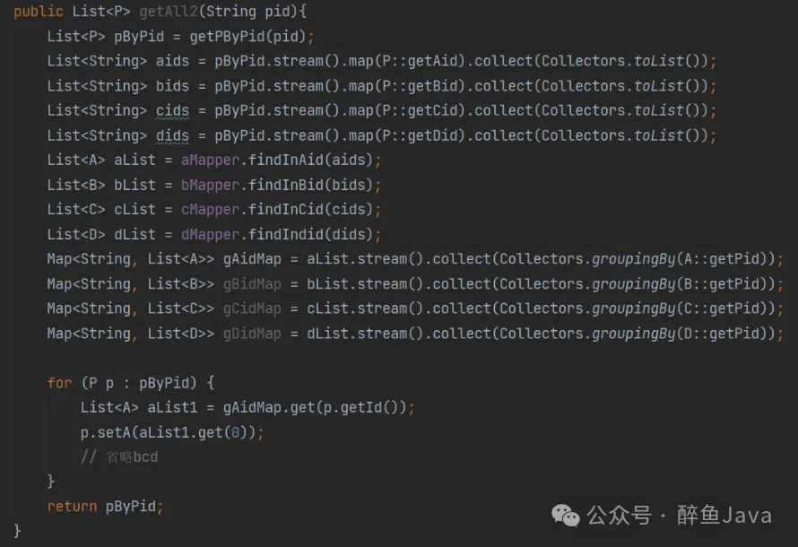 根据查询条件获取基础对象。取出 list 中某一个值例如 aid,生成新 list,当作下一次查询的查询条件。封装对应数据。