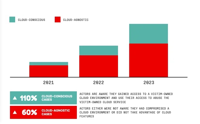 结果显示,从2022年到2023年,云意识案例增加了110%,而云不可知案例增加了60%。