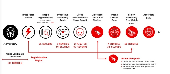 交互式网络犯罪入侵活动的平均时间从2022年的84分钟下降到2023年的62分钟,最快的时间仅为2分7秒。