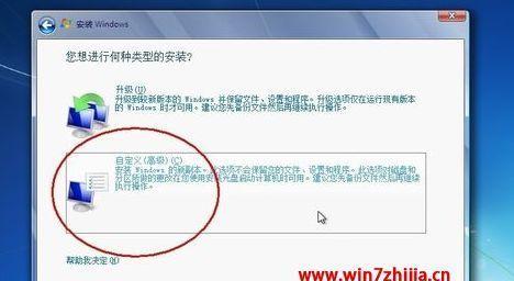 在安装类型界面上,选择“自定义(高级)”安装类型,以便对系统进行更详细的配置。